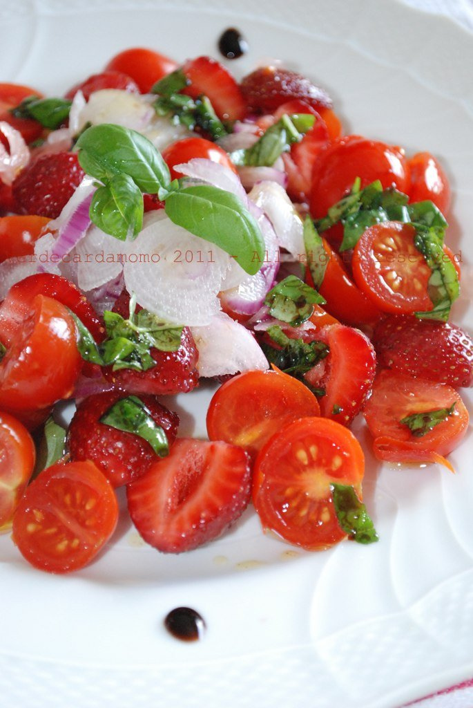 il gusto dolce delle fragole si sposa benissimo con il pungente sapore della cipolla rossa di Tropea e l’acidulo dei pomodorini…provare per credere….